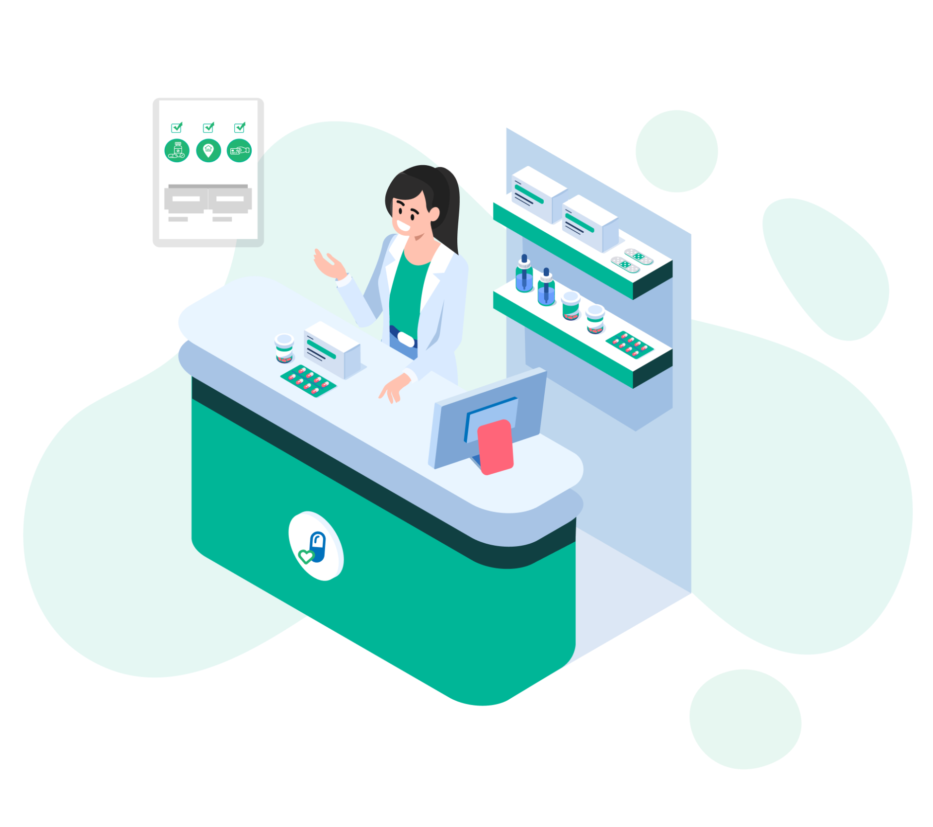 Εκτέλεση ιατρικών συνταγών, Μέτρηση αρτηριακής πίεσης, Μέτρηση σακχάρου αίματος, Συμβουλευτική φαρμακευτικής αγωγής.